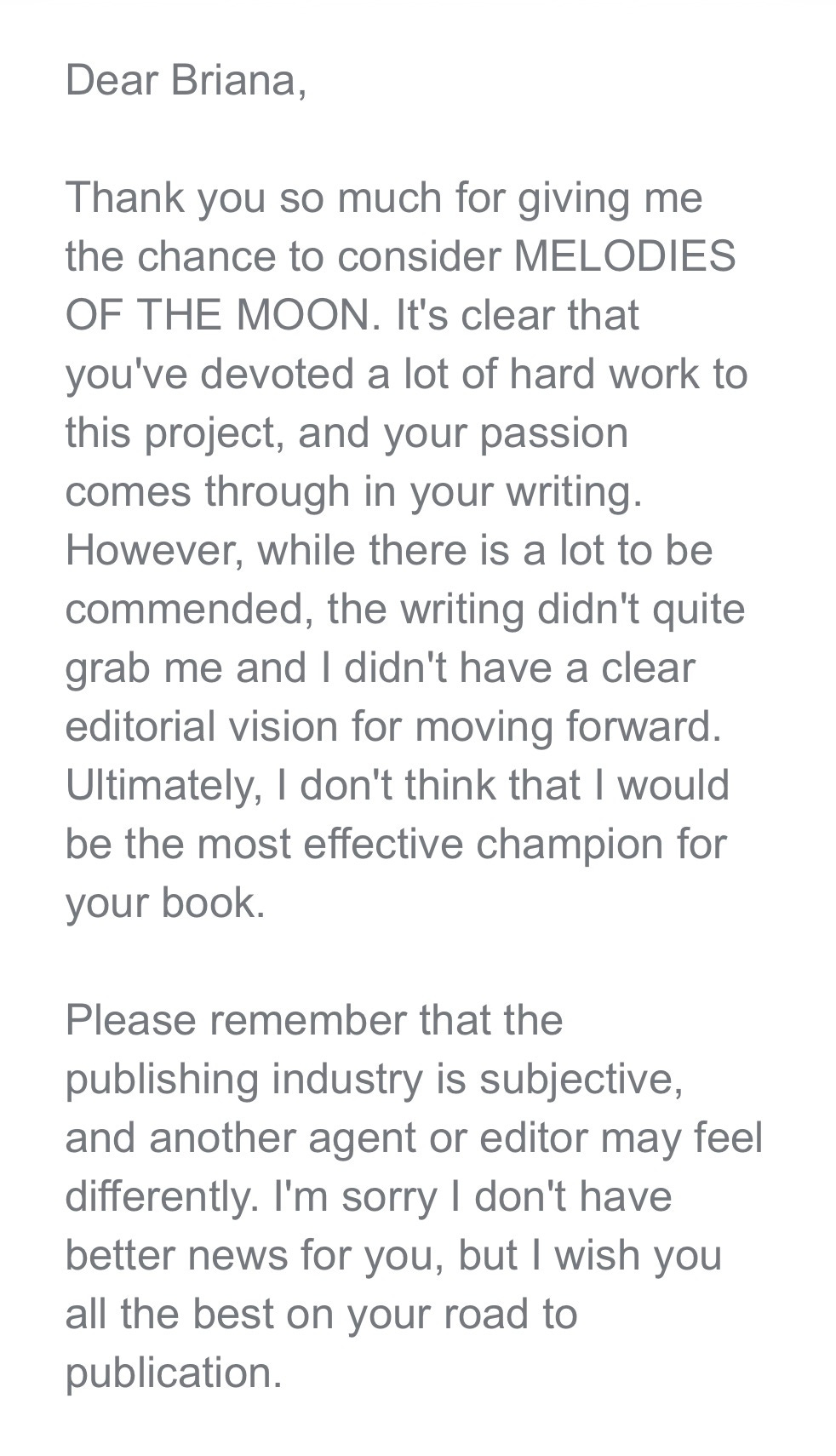 However, this rejection did make me think about how frustrating this process is. Publishing is a business like anything else, so the writing and the story have to be there. But when I received this rejection, I found myself asking: why doesn’t passion count for something?